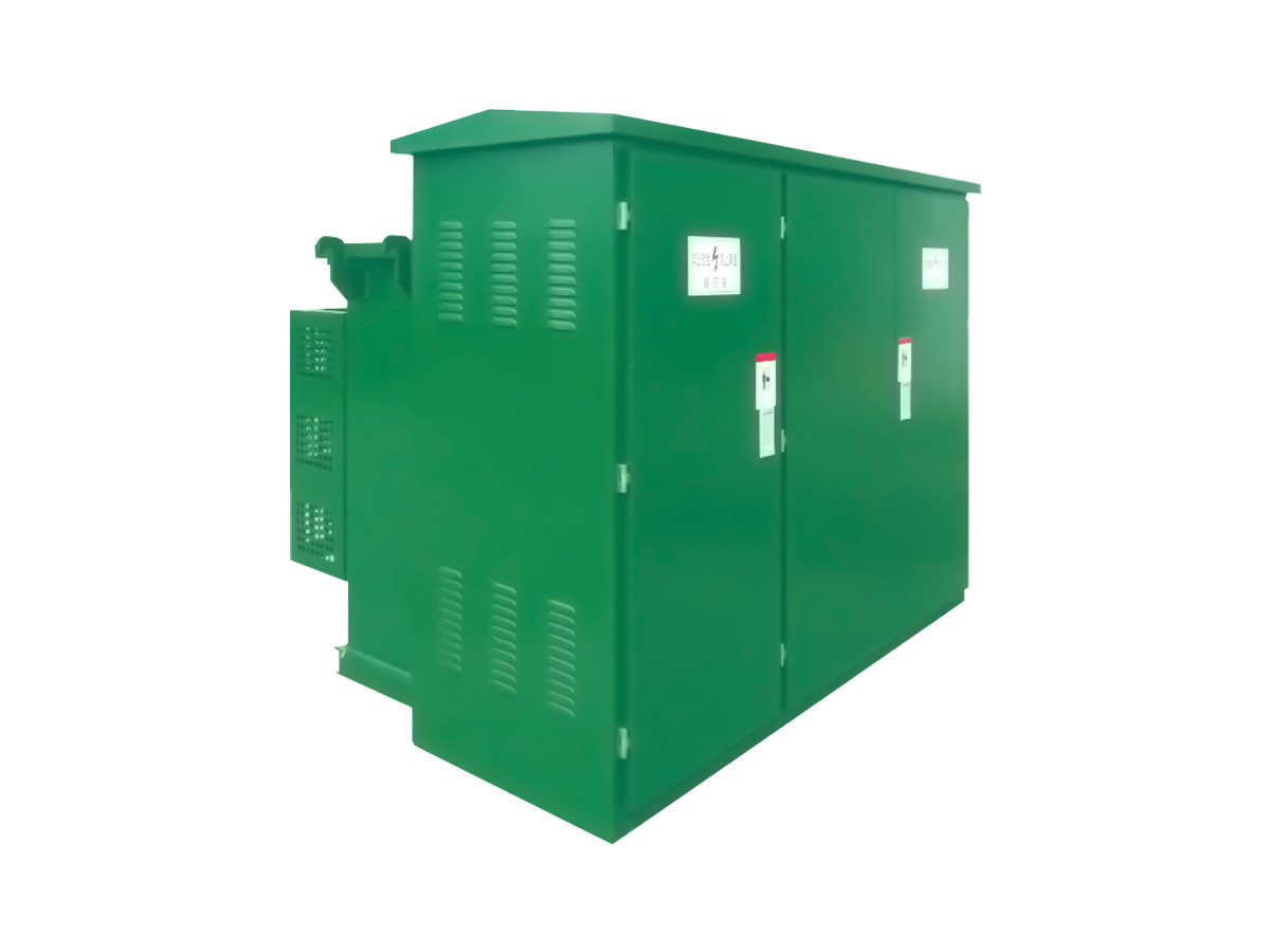 风力发电用组合式变电站,是将升压变压器器身、开关设备、熔断器、分接开关及相应辅助设备进行组合的成套预装式变电站,高压开关、熔断器均进入油箱,整体外形尺寸较小,其结构形式与90年代从美国引进的箱变类似,行业内称为“风电美变”。按产品结构及元件配置可分为两种,一种是高压全绝缘出线式产品;一种是高压采用瓷套管出线式产品。